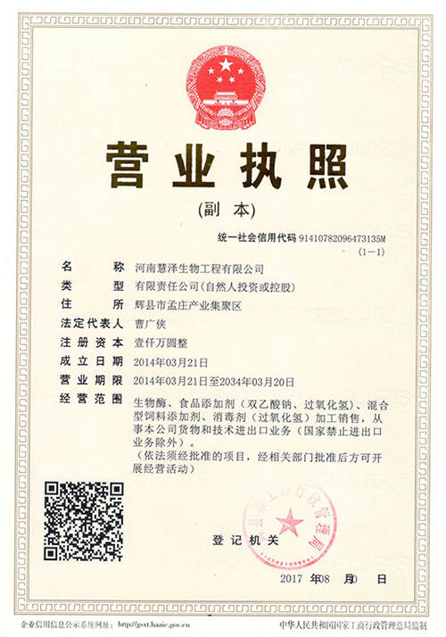 鄭州慧澤生化科技有限公司是一家充滿朝氣的科研生產(chǎn)型高技術(shù)企業(yè)。目前公司業(yè)務(wù)主要集中在精細(xì)化工、食品化工和微生物制劑行業(yè)。公司現(xiàn)已建成鄭州、焦作、新鄉(xiāng)三個(gè)生產(chǎn)基地,其中河南新鄉(xiāng)輝縣孟莊生產(chǎn)基地占地70畝,總投資達(dá)1.2億。現(xiàn)擁有年產(chǎn)100000噸過(guò)氧化氫消毒劑,年產(chǎn)8000噸的過(guò)氧化鈣和年產(chǎn)5000噸的雙乙酸鈉的生產(chǎn)線,同時(shí)開設(shè)有生產(chǎn)總量5000噸的枯草芽孢桿菌、地衣芽孢桿菌等微生態(tài)制劑發(fā)酵生產(chǎn)車間。公司始終堅(jiān)持“以人為本,科技興企,品質(zhì)優(yōu)良,用戶滿意”的經(jīng)營(yíng)宗旨。為客戶創(chuàng)造價(jià)值更多的價(jià)值...
